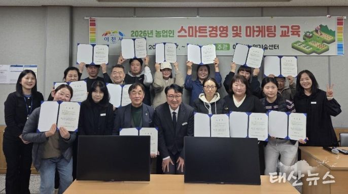 태산뉴스 이동욱 기자 | 이천시는 지난 3월 10일 농업기술센터 정보화 교육장에서 ‘2026년 농업인 스마트경영 및 마케팅 교육’ 수료식을 성황리에 개최했다고 밝혔다.