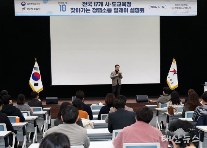 태산뉴스 김준수 기자 | 경기도교육청이 청탁금지법 시행 10주년을 맞아 국민권익위원회와 함께하는 ‘찾아가는 청렴소통 릴레이 설명회’를 12일 개최했다.
