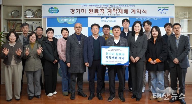 태산뉴스 김준수 기자 | 경기도농업기술원은 경기도 쌀 가공업체 4곳과 김포특수가공미영농조합이 ‘경기미 원료곡 200톤 계약재배 계약’을 체결했다고 12일 밝혔다. 계약식은 농업기술원 본관 상황실에서 개최됐다.