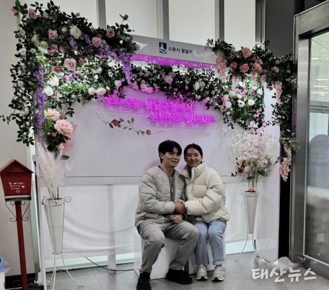 태산뉴스 이동욱 기자 | 수원시 팔달구는 팔달구청 종합민원실 내 ‘혼인신고 기념 포토존’을 운영하고 있으며, 신혼부부에게 아름다운 추억을 남기는 명소로 자리매김하고 있다.