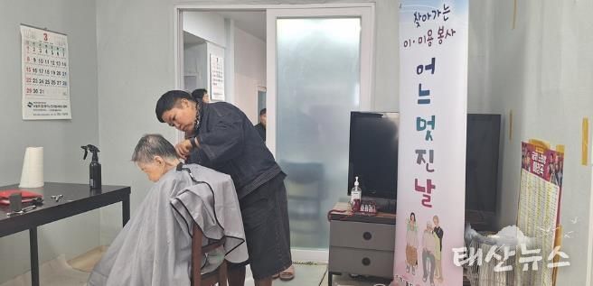 흥선동 소재 사이버미용실을 운영하는 이미숙 원장은 2025년부터 ‘어느 멋진 날’ 봉사에 참여해 미용실 이용이 어려운 노인들을 위해 무료 이미용 서비스를 제공하고 있다. 이번 봉사에는 예년보다 많은 9명의 노인이 참여해 이미용 서비스를 이용했다.