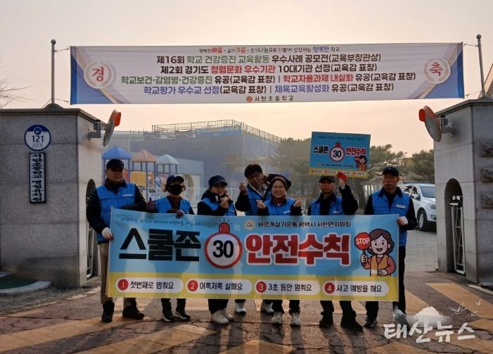 태산뉴스 이동욱 기자 | 바르게살기위원회 평택시 서탄면위원회는 지난 12일 서탄초등학교 앞 일원에서 교통안전 캠페인을 진행했다.