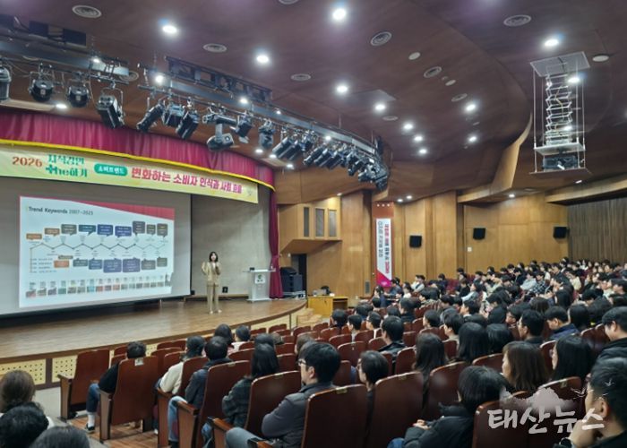 권정윤 강사는 2026년 대한민국 소비 흐름의 주요 특징을 설명하며 ‘트렌트코리아’에서 제시한 핵심 키워드를 중심으로 사회 변화 흐름을 소개했다. 이어 소비 성향과 생활 방식의 변화가 사회와 산업 전반에 미치는 영향을 다양한 사례를 통해 설명했다.