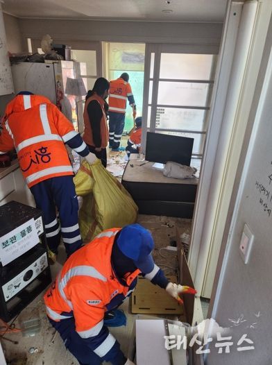태산뉴스 이동욱 기자 | 시흥시 장곡동은 지난 3월 12일 LH19단지에서 집안의 오물과 쓰레기 적치로 주변 가구까지 피해를 주고 있는 주거환경 취약가구에 명성환경(자)과 함께 주거 환경 개선 사업을 실시했다.