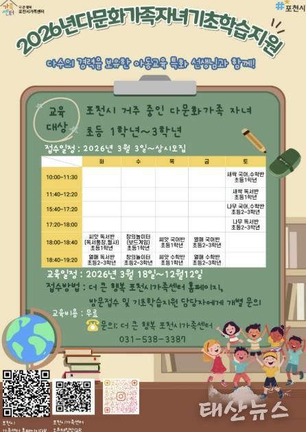 태산뉴스 이동욱 기자 | 포천시 더 큰 행복 포천시가족센터는 다문화가족 자녀의 안정적인 학교생활 적응과 학습 격차 해소를 위해 ‘다문화가족 자녀 기초학습지원 사업’을 18일부터 본격 운영한다.