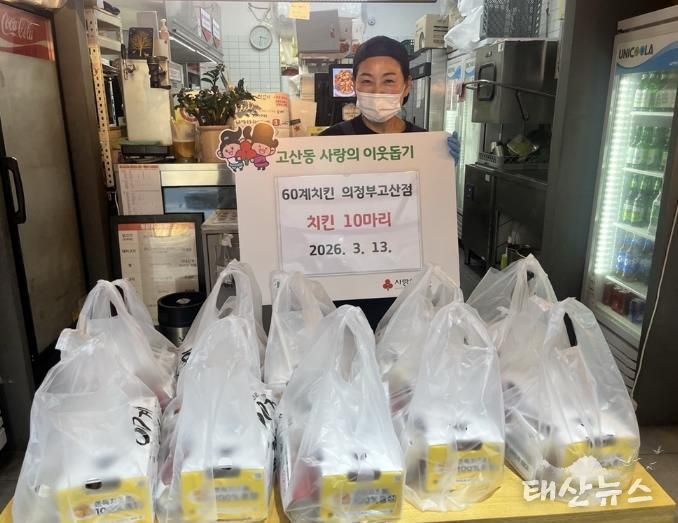 태산뉴스 이동욱 기자 | 의정부시 고산동주민센터는 3월 13일 60계치킨 의정부고산점이 고산동에 치킨 10마리를 기부했다고 밝혔다.