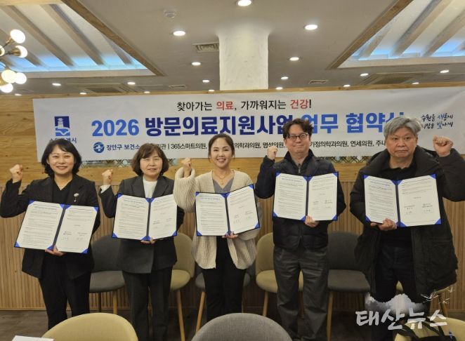 태산뉴스 이동욱 기자 | 수원시 장안구보건소는 18일 지역 의료기관 6곳과 ‘방문의료지원사업 업무협약’을 체결하고, 거동이 불편한 의료 취약계층을 위한 재택의료 지원체계를 강화하기로 했다.