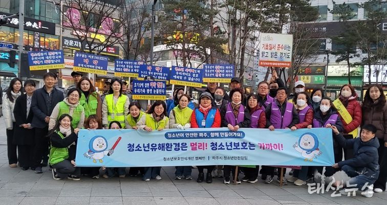 태산뉴스 이동욱 기자 | 파주시는 개학기를 맞아 지난 18일 금릉역 인근 학교 주변과 번화가에서 민관이 합동해 유해환경을 점검하고 청소년 보호 홍보 활동을 실시했다.