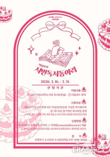 태산뉴스 이동욱 기자 | 의정부시는 독서공동체의 자발적 참여를 촉진하고 독서 문화의 기반을 마련하기 위해 ‘2026년 시민 독서동아리’를 운영한다.