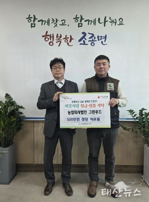 태산뉴스 이동욱 기자 | 농업회사법인 그린푸드는 18일 가평군 조종면 행정복지센터를 방문해 500만원 상당의 식료품을 기탁하며 취약계층 지원에 힘을 보탰다.