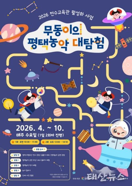 태산뉴스 이동욱 기자 | 평택시는 오는 4월 29일부터 10월 28일까지 2026년 전수교육관 활성화 지원사업 ‘무동이의 평택농악 대탐험’을 평택무형유산 전수교육관에서 매주 수요일, 1일 2회차 총 38회를 운영한다고 밝혔다.