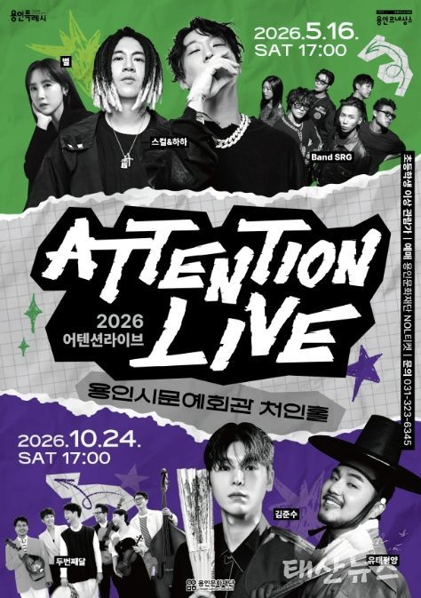태산뉴스 이지율 기자 | 용인문화재단은 용인시문예회관 처인홀에서 청년층을 주요 대상으로 한 라이브 공연 브랜드 '2026 어텐션 라이브'를 상·하반기 두 차례에 걸쳐 개최한다.