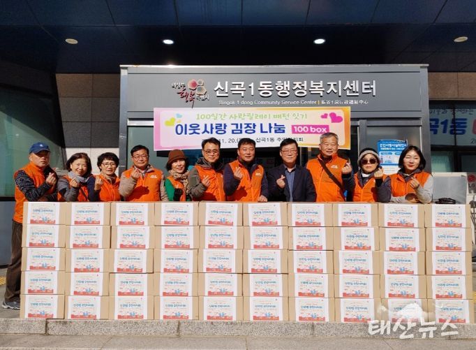 태산뉴스 이월금 기자 | 의정부시 신곡1동행정복지센터는 11월 20일 신곡1동 주민자치회가 어려운 이웃을 위한 김장김치 100상자를 전달하며 지역사회에 온정을 더했다고 밝혔다.