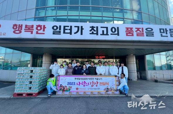 태산뉴스 이월금 기자 | 안성시기업사회공헌단인 롯데칠성음료(주) 안성공장이 김장철을 맞아 11월 24일, 안성 지역 소외계층을 돕기 위해 안성시자원봉사센터에 김장 김치 10kg 72상자와 자사 음료를 기탁했다.