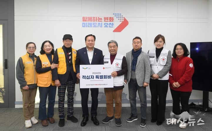 이날 전달식에는 대한적십자사봉사회 오산지구협의회 김현옥 회장 등 봉사회 회원들이 함께 참석했으며, 경기도지사 이영재 대의원, 김요섭 대의원, 대한적십자사봉사회 오산시지구협의회도 특별회비 전달식에 함께해 따뜻한 지역사회 만들기에 동참했다.