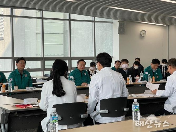 태산뉴스 이동욱 기자 | 이상일 용인특례시장은 13일 오후 조규홍 보건복지부장관과 함께 용인 기흥구의 종합병원인 강남병원을 방문해 의료 현장의 상황을 점검하고 의료관계자들의 이야기를 들었다.