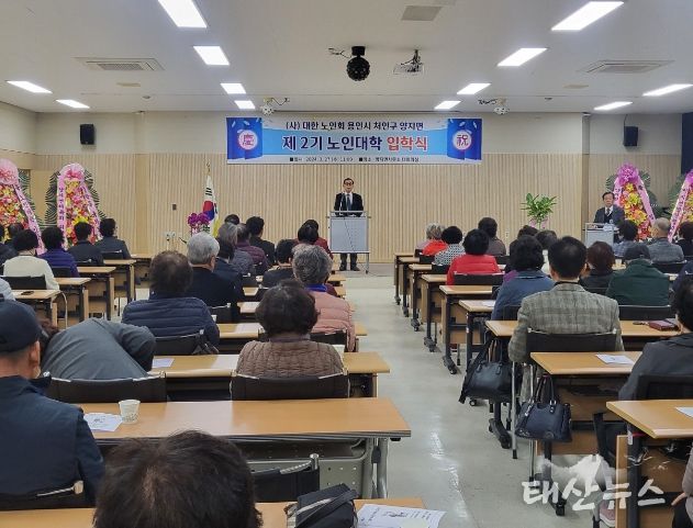 지난 달 27일 용인특례시 처인구 양지면 행정복지센터 대회의실에서 열린 ‘제2기 양지노인대학 입학식’에는 82명의 신입생의 새로운 배움을 응원하는 모습이 연출됐다.