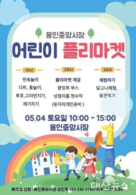 태산뉴스 이지율 기자 | 용인특례시는 가정의 달을 맞아 오는 4일 처인구 김량장동 용인중앙시장에서 ‘어린이 플리마켓 행사’가 열린다고 2일 밝혔다.