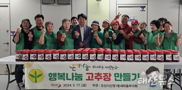 태산뉴스 이동욱 기자 | 오산시 신장1동은 지난 17일 신장1동 새마을 부녀회에서 ‘행복나눔 고추장 만들기’를 실시했다고 밝혔다.