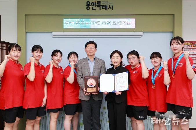 태산뉴스 이지율 기자 | 용인특례시는 16일 직장운동경기부 소속 볼링팀의 우승 트로피 봉납식이 시청 시장실에서 열렸다고 밝혔다.