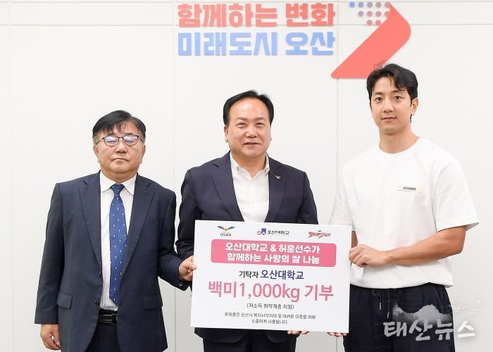 태산뉴스 이동욱 기자 | 오산시는 16일 오산시청에서 오산대학교와 수원KT소닉붐 허훈 선수와 함께하는 3점 슛 기부챌린지로 적립한 금액 3백만 원(백미 10kg 100포)을 취약계층을 위해 기탁했다.