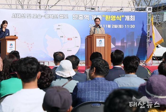 태산뉴스 이동욱 기자 | 평택시는 2일 서해선과 평택선 개통을 맞아 안중역에서 환영식을 개최했다.