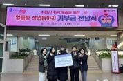 태산뉴스 이동욱 기자 | 수원 영통중학교 창업동아리 학생들이 창업 활동 수익금을 모아 수원시 취약계층 시민을 위해 기부했다. 1월 29일 수원시청 본관 1층 로비에서 열린 기부금 전달식에는 윤영숙 시민복지국장, 영통중학교 창업동아리 학생 등이 참석했다. 학생들은 직접 디자인·제작한 탁상용 달력 100개를 판매해 마련한 수익금 45만 원을 수원시에 전달했다. 수원시는 기부금을 취약계층 시민 지원을 위해 사용할 예정이다. 영통중학교 창업동아리 학생들은 “작은 나눔이지만 어려운 이웃들에게 도움이 되기를 바라는 마음으로 기부에 참여했다”며 “직접 만든 작품으로 나눔을 실천할 수 있어 기쁘다”고 소감을 밝혔다. 윤영숙 시민복지국장은 “학생들이 활동 수익금으로 이웃사랑을 실천한 모습이 대견하다”며 “따뜻한 나눔이 지역사회 전반으로 확산되기를 바란다”고 말했다.
