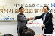 태산뉴스 이동욱 기자 | 디지털 스포츠 솔루션 선도기업 ㈜에어패스가 하남시 체육 발전의 근간을 마련하고 지역사회와의 실질적인 상생을 실천하기 위해 하남시 축구협회에 후원기금을 전달했다고 밝혔다. ㈜에어패스는 지난 10일 진행된 후원기금 전달식을 통해 하남시 축구협회에 성금을 기탁하며 지역 체육계에 활력을 불어넣었다. 이번 후원은 단순한 일회성 지원을 넘어, 하남시 축구 동호인들의 활동 저변을 넓히고 미래의 주역인 유소년 축구 꿈나무들이 보다 안정적인 환경에서 훈련에 매진할 수 있는 육성 토대를 조성하기 위해 마련됐다. ㈜에어패스와 하남시 축구협회는 이번 전달식을 기점으로 지역 내 축구 문화 확산과 체육 인프라 강화를 위한 다각적인 협업 체계를 구축하고, 긴밀한 파트너십을 이어가기로 약속했다. 이날 행사에는 이현재 하남시장을 비롯하여 하남시 축구협회 주요 관계자들이 대거 참석해 자리를 빛냈다. 참석자들은 지역 체육 발전을 위한 민관 협력의 중요성에 깊이 공감하며, 기업의 사회적 책임 활동이 지역 공동체 활성화에 미치는 긍정적인 의미를 다시 한번 되새겼다. 임종호 ㈜에어패스 대표이사는 이 자리에서 “㈜