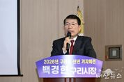 태산뉴스 이동욱 기자 | 구리시는 28일 오전 11시 10분, 구리시 여성행복센터 대강당에서 2026년 새해를 맞아 신년 기자회견을 열고, 그간의 시정 운영 성과를 돌아보며 올해 시정 운영 방향을 발표했다. 백경현 시장은 인사말에서 “지난 한 해 구리시는 어려운 여건 속에서도 말이 아닌 성과로, 계획이 아닌 실행으로 시민의 삶에 변화를 만들어 왔다”라며 “2026년에는 그 변화의 흐름을 이어 시민의 일상 곳곳에서 체감할 수 있는 성과로 완성해 나가겠다”라고 밝혔다. 말이 아닌 실행으로 증명된 변화 백 시장은 지난해 말 구리토평한강 공공주택지구 지정 완료를 주요 성과로 언급하며 “단순한 주거 공급을 넘어 직·주·락이 어우러진 구리시 미래 100년의 출발점”이라고 말했다. 이어 인창천 생태하천 복원사업이 지난해 말 본격 착공에 들어간 점을 짚으며 “도심 속 자연과 휴식 공간을 회복하는 전환점이 될 것”이라고 강조했다. 또한 토평교 하부 갤러리 조성과 대형마트 재개장을 통해 유휴 공간을 문화공간으로 전환하고, 주민 생활 불편 해소와 지역 상권 회복의 계기를 마련했다고 설명했다. 이와 함께 평