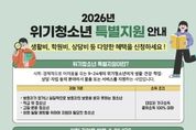 태산뉴스 이동욱 기자 | 동두천시는 2026년 ‘위기청소년 특별지원’과 관련해 사회·경제적으로 어려움을 겪는 관내 위기청소년들에게 다양한 혜택을 제공하기 위한 신청을 3월 30(월)까지 받는다고 밝혔다. 지원 대상자는 9세 이상 24세 이하의 위기청소년(은둔청소년, 저소득 한부모 가족 자녀 등)으로 생활, 건강, 학업, 자립, 상담, 법률 지원 등 다양한 혜택을 받을 수 있다. 신청은 청소년 본인, 보호자, 청소년지도자, 교원, 사회복지사, 청소년 담당 공무원 등이 청소년이 거주하고 있는 행정복지센터에서 할 수 있다. 선정 기준은 소득 기준 중위소득 100% 이하이며, 지자체 ‘청소년복지심의위원회의’ 심의를 통해 적합 대상자 및 지원 금액, 기간 등이 결정된다. 시 관계자는 “모든 위기 청소년들에게 도움이 됐으면 좋겠지만, '국민기초생활 보장법','긴급복지지원법','의료급여법','사회복지사업법' 등에 따라 이미 지원을 받고 있는 경우 동일 내용의 중복 지원은 불가하다”라고 말했다.