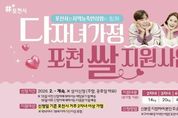 태산뉴스 이동욱 기자 | 포천시는 지난 26일 시청에서 엔에이치(NH)농협 포천시지부 및 관내 9개 지역 농·축·인삼협과 ‘포천시 다자녀가정 포천 쌀 지원사업’ 확대를 위한 업무협약을 체결했다. 이날 협약식에는 포천시장을 비롯해 엔에이치농협 포천시지부장과 지역 농·축·인삼협 조합장들이 참석해, 다자녀가정의 경제적 부담 완화와 지역 농업의 지속 가능한 상생을 위한 협력 의지를 공유했다. 이번 협약은 지난 2025년 사회공헌 사업으로 4자녀 이상 가정을 대상으로 시작된 쌀 지원사업을 제도적으로 확대·안착시키기 위해 추진됐으며, 지원 조례 제정 등 행정 절차를 거쳐 2026년부터는 시 예산을 투입해 지원 대상을 2~3자녀 가정까지 전면 확대하게 됐다. 협약에 따라 포천시에 주민등록을 둔 2자녀 이상 가정(막내 자녀 18세 이하)을 대상으로 자녀 수에 따라 차등된 물량의 ‘포천 쌀’을 분기별로 지원한다. 다만 초중고·대학교·기숙사 등 학업을 목적으로 세대 분리된 자녀의 경우에도 지원 대상에 포함된다. 지원 규모는 2자녀 가정 14kg, 3자녀 가정 20kg, 4자녀 가정 40kg, 5자녀 가정 60kg, 6자녀 이상