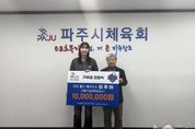 태산뉴스 이동욱 기자 | 파주가 낳은 배구 인기인(스타)이자 아이비케이(IBK)기업은행 알토스 소속 이주아 선수가 고향 후배들을 위해 1천만 원을 기부하며 남다른 고향 사랑을 전했다. 파주시체육회는 지난 23일 체육회 회의실에서 이주아 선수와 부모, 파주시배구협회 관계자(박희수 회장, 황우연 부회장, 전찬혁 사무국장) 등이 참석한 가운데 기부금 전달식을 개최했다. 이번에 전달된 기부금은 파주 지역 생활체육 활성화를 비롯해 유소년 및 학생 선수 육성, 체육 기반 시설 개선 등 파주시 체육 발전을 위한 다양한 사업에 사용될 예정이다. 이주아 선수는 “고향 파주에서 많은 응원과 도움을 받으며 운동을 시작했고, 덕분에 지금의 자리까지 올 수 있었다”라며, “지역 체육 발전과 후배 선수들에게 작게나마 힘이 되고자 기부를 결심하게 됐다”라고 소감을 밝혔다. 이어 “앞으로도 파주 체육이 더욱 활성화돼 꿈을 키우는 후배들이 더 나은 환경에서 운동할 수 있기를 바란다”라고 덧붙였다. 김종훈 파주시체육회장은 “파주 출신 국가대표 선수로 훌륭하게 성장한 이주아 선수가 고향을 잊지 않고 나눔을 실천해 준 데 대해 깊이
