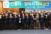 태산뉴스 이지율 기자 | 평택시의회는 2월 27일, 안동시청에서 평택시-안동시 자매결연 협약식에 참석해 양 도시의 상생 발전을 다짐했다. 이날 협약식에는 평택시의회 이종원 의회운영위원장, 김영주 기획행정위원장을 비롯하여 정장선 평택시장 등 평택시 대표단이 참석하고 김경도 안동시의회 의장, 권기창 안동시장 등 안동시 대표단이 함께하며 상호 협력 의지를 다졌다. 협약식은 ▲협약서 서명 및 교환 ▲기념품 교환 ▲지역 농특산품 판로 개척 및 로컬푸드 교류 협력 방안 등이 논의됐다. 이어 안동 하회마을을 방문해 문화·관광 교류 확대에 대해서도 의견을 나눴다. 평택시의회 이종원 의회운영위원장은 “평택은 서해안의 관문이자 국제교류의 중심 도시이고, 안동은 깊은 전통과 유교 문화가 뿌리내린 선비문화의 본고장”이라며 “서로 다른 강점과 매력을 지닌 두 도시가 손을 맞잡는 의미는 매우 크다”라고 말했다. 이어 “양 도시의 상생과 우정이 시민이 체감할 수 있는 실질적인 성과로 이뤄지도록 평택시의회도 적극 지원하겠다”라고 밝혔다. 안동시의회 김경도 의장은 “평택시와의 자매결연은 전통과 산업이 만나 새로운 상생 모델을 만