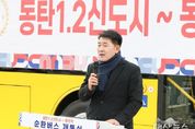 태산뉴스 이지율 기자 | 화성특례시의회는 26일 동탄 패밀리풀 공영주차장에서 열린 '동탄역 순환버스 개통식'에 참석해, 주민의 교통편의 증진을 위한 새로운 출발을 시민들과 함께 축하했다. 이날 개통식에는 배정수 의장을 비롯해 김영수 의회운영위원장, 김종복 문화복지위원장, 이은진·이해남 의원이 참석했고 시 관계자 및 주민 등이 함께했다. 동탄역 순환버스는 동탄 지역 내 주요 생활권과 동탄역을 연결하는 노선으로, 주민들의 동탄역 접근성을 개선하고 일상 이동의 불편을 해소하기 위해 마련됐다. 특히 이번 개통은 주민들의 지속적인 건의와 현장 목소리를 반영한 결과로, 지역 맞춤형 교통체계 개편의 출발점이라는 점에서 의미를 더하고 있다. 배정수 의장은 “동탄 주민이 보다 편리하게 이용할 수 있는 동탄역 순환버스 개통식을 맞이하게 되어 매우 뜻깊게 생각한다”며“빠르게 성장한 동탄이 화성특례시 중심 도시로 자리매김한 만큼, 이에 걸맞은 촘촘한 대중교통 체계가 무엇보다 중요하다”고 밝혔다. 배 의장은 이어 “이번 사업은 단순히 버스 한 노선을 늘리는 것이 아니라, 주민의 일상 이동을 바꾸고 삶의 질을 높이는 변화”