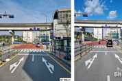 태산뉴스 이동욱 기자 | 용인특례시 처인구는 지역내 주요 교차로 차량 정지선 229개소를 일제 정비하고, 6곳에 스마트 횡단보도를 설치했다고 15일 밝혔다. 차량 정지선은 자동차가 운행 중 정지해야 할 지점에 설치하는 노면표시로, ‘교통노면표시 설치·관리 업무편람’에 따라 최대 10m 이격 설치할 수 있다. 횡단보도와 정지선의 거리를 5m로 조정하면 차와 사람이 부딪치는 사고를 낮출 수 있을 것으로 예상된다. 다수의 차량 정지선은 횡단보다에서 2~3m 이격설치됐다. 이에 시는 차량이 급정거할 경우 횡단보도를 침범해 일어나는 사고를 예방하기 위해 229곳의 교차로에 있는 정지선을 횡단보도에서 5m로 이격하는 작업을 진행해 마무리했다. 또, LED 바닥신호등과 적색신호등 잔여시간표시기를 보행자통행량이 많은 6개 교차로(▲외국어대 사거리 ▲명지대역 사거리 ▲우미아파트 사거리 ▲용인시청 삼거리 ▲둔전사거리 ▲고진역 삼거리)에 설치하면서 스마트횡단보도 사업도 완료했다. 정지선과 횡단보도의 충분한 거리 확보와 LED 바닥신호등 설치 등의 사업이 마무리됨에 따라 구는 차량 운전자가 횡단보도와 안전거리를 확보하고