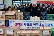 태산뉴스 이동욱 기자 | 수원특례시 영통구 영통3동은 지난 11일, 다가오는 설 명절을 맞아 관내 취약계층을 위한 이웃나눔 전달식을 진행했다. 이번 전달식은 설 명절을 맞아 경제적 어려움을 겪는 저소득층과 복지사각지대 이웃들이 따뜻한 명절을 보낼 수 있도록 마련됐다. 후원물품은 햄, 라면, 생필품 등 다양한 품목으로 구성됐으며, 관내 취약계층 200여 세대에 전달될 예정이다. 진성원 영통3동 단체협의회장은 “설 명절을 맞아 여러 기관이 뜻을 모아 지역 이웃들을 위한 나눔에 함께 참여했다. 각 기관의 정성이 모인 후원물품이 어려운 이웃들의 생활에 작은 보탬이 되길 바란다”고 전했다. 김인태 영통3동장은 “여러 기관이 함께해 주신 소중한 후원에 깊이 감사드린다. 전달된 후원물품은 도움이 필요한 이웃들에게 전달해 따뜻한 명절을 보낼 수 있도록 하겠다”고 말했다.
