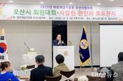 태산뉴스 김준수 기자 | 바르게살기운동 오산시협의회는 지난 5일 벨라노떼웨딩(구 웨딩의전당)에서 ‘2025년 회원대회 및 사할린 효도잔치’를 성황리에 개최했다. 이날 행사에는 협의회 회원 100여 명과 사할린한인회 어르신 50여 명 등 총 150여 명이 참석했다. 참석자들은 한 해 동안 지역사회 봉사활동을 수행한 회원들의 노고를 격려하고, 사할린 동포 어르신들에게 위로와 감사의 마음을 전하는 뜻깊은 시간을 가졌다. 행사는 식전공연을 시작으로 △김종필 회장의 대회사 △오산시장 축사 △오산시의회 의장 축사 △유공자 표창 △활동 성과보고 △박영신 사할린한인회장의 인사 △김영선 경기도협의회장의 격려사 △결의문 낭독 순으로 진행됐다. 김종필 회장은 대회사에서 “한 해 동안 지역 곳곳에서 이웃사랑을 실천하고 바른 사회 구현을 위해 헌신해 주신 회원들에게 깊이 감사드린다”고 말했다. 이권재 오산시장은 축사를 통해 “바르게살기운동 오산시협의회 회원들의 봉사 정신에 감사드리며, 사할린 동포 어르신을 포함한 모든 시민이 존중받는 따뜻한 오산을 만들기 위해 시에서도 최선을 다하겠다”고 전했다.
