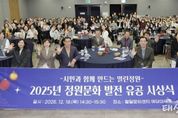 태산뉴스 이동욱 기자 | 수원특례시는 18일 팔달문화센터 예당마루홀에서 ‘2025년 정원문화 발전 유공 시상식’을 열었다. 정원문화 발전에 기여한 시민과 단체 등에 수원시장상(47개)과 수원시의회 의장상(7개)을 수여했다. 시상은 표창장·감사패 수여, 시민정원 경연대회, 베스트 관리상, 올해의 정원인상 등 분야별로 진행됐다. 지난 10월 효원공원에서 열렸던 ‘2025년 수원시 시민정원 경연대회’ 수상팀들을 시상했다. 하나의 물방울이 만들어내는 무한한 생명의 파장을 표현한 ‘완뚝원정대’의 ‘리플(ripple) 가든’이 대상을 받았다. 어린 꽃이 꿈꾸는 산의 이미지를 담은 ‘진달래동산 꽃뫼’ 팀의 ‘어린 꽃이 꿈꾸는 뫼(산)’이 최우수상, 빛과 생명의 흐름을 표현한 ‘빛나게’ 팀의 ‘Flowing Light, Flowering Life(플로잉 라이트, 플라워링 라이프’가 우수상을 받았다. 이재준 수원시장은 “도심 속 열린 정원은 시민에게 휴식처가 되고, 기후 위기 대응에는 힘이 된다”며 “정원을 가꾼 수상자 노력에 감사하며 시민 일상에 초록이 늘도록 지원을 이어가겠다”고 말했다.