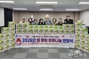 태산뉴스 이동욱 기자 | 수원시 장안구 파장동은 지난 10일, 새마을금고 노송지점에서 설 명절을 맞아 파장동, 정자1동, 수원시립노인전문요양원에 라면 130박스와 백미 100kg를 후원했다고 밝혔다. 이번 후원은 새마을금고 사회공헌 활동의 일환인 ‘좀도리운동’으로 마련됐으며, 설 명절을 앞두고 소외되기 쉬운 이웃들이 따뜻한 명절을 보낼 수 있도록 돕고자 추진됐다. 후원 물품은 파장동, 정자1동에 라면 65박스씩, 수원시립노인전문요양원에 백미 100kg가 전달됐다. 새마을금고는 지역사회를 위한 꾸준한 공헌 활동을 통해 이웃과 함께하는 나눔 문화를 실천하고 있다. 지속적인 나눔 실천은 지역사회에 따뜻한 온기를 더하며, 주민들이 함께 성장하는 건강한 지역공동체 조성에 기여하고 있다. 새마을금고 강승근 이사장은 “명절이 다가올수록 주변의 이웃들을 다시 한번 돌아보게 된다”며 “이번 나눔이 소외될 수 있는 이웃들에게 작은 위로와 힘이 되기를 바란다”고 전했다.