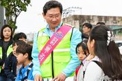 태산뉴스 이동욱 기자 | 이상일 용인특례시장은 14일 아침 처인구 고림로에 위치한 고진초등학교 정문 횡단보도에서 어린이들의 안전한 통학환경 조성을 위한 교통지도 봉사활동에 참여하고 학교 주변 통학로를 점검했다. 이상일 시장은 서경란 고진초 교장, 녹색어머니회·학부모회·학생 등 60여명과 함께 등굣길 어린이들이 안전하게 길을 건널 수 있도록 돕고 운전자들에게 ‘어린이보호구역 내 서행’을 당부하는 교통안전 캠페인을 펼쳤다. 이 시장은 통학로 현장을 둘러보며 ▲고림고 유리방음벽 모서리 보호대 설치 ▲고림고~힐스테이트용인고진역 구간 횡단보도 너비 확대 ▲해당 구간 도로의 물고임 등 도로시설물 일제정비 ▲통학로 낙엽제거(보행자 미끄러짐 방지) 등의 추가 건의사항을 꼼꼼히 챙겼다. 이상일 시장은 녹색어머니회와 학부모회 회원들에게 “아이들의 등굣길을 지켜주셔서 감사 드린다”며 “학생들이 마음 놓고 통학할 수 있는 안전한 도시 환경을 만드는 것이 무엇보다 중요한 만큼 시에서도 현장을 잘 살펴 필요한 조치를 신속히 진행하겠다”고 말했다. 이 시장은 10월과 11월에도 용인신촌초, 백현초, 구갈초, 신월초, 함박초,
