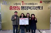 태산뉴스 이동욱 기자 | 오산시 중앙동 행정복지센터는 지난 11일 중앙동 주민이자 57통 통장인 이미숙 씨가 관내 취약계층 이웃을 돕기 위해 성금 100만 원을 기탁했다고 밝혔다. 이미숙 통장은 평소 주민들과 가장 가까운 위치에서 소통하며 행정과 주민을 잇는 현장 중심의 역할을 성실히 수행해 왔으며, 취약계층을 위한 나눔 실천에도 적극 참여하는 등 지역 내 복지사각지대 해소에 기여해 오고 있다. 이미숙 통장은 “통장으로 활동하며 주민들과 소통하다 보니 어려운 이웃들이 많다는 것을 느꼈고, 그분들에게 조금이나마 힘이 되고 싶은 마음으로 기부를 결정했다”며 “성금이 꼭 필요한 곳에 사용되어 이웃들이 새해를 더 따뜻하게 보내는 데 보탬이 되길 바란다”고 말했다. 백경희 중앙동장은 “주민을 대표해 이웃사랑을 실천해 주신 따뜻한 마음에 깊이 감사드린다”며 “기탁해 주신 성금은 도움이 필요한 이웃들에게 소중히 전달해 모두가 행복한 중앙동을 만들어 가는 데 최선을 다하겠다”고 밝혔다.