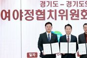 태산뉴스 김준수 기자 | 경기도의회 국민의힘은 4일, 도의회 예담채에서 열린 ‘제1차 도의회-도 여야정협치위원회 전체회의’에서 ‘2026년도 본예산 협치예산’ 및 ‘특별조정교부금 제도 개선’에 합의했다고 밝혔다. 이날 행사에는 도의회에서 백현종 국민의힘 대표의원과 김진경 의장, 최종현 더불어민주당 대표의원을 비롯해 양당 총괄수석부대표와 수석정책위원장 및 수석대변인이 참석했다. 경기도에서는 김동연 도지사와 고영인 경제부지사를 포함해 협치수석, 기획조정실장, 균형발전기획실장 등이 자리했다. 이번 전체회의는 지난 8월 출범한 도의회-도 여야정협치위원회 협약식과 현판식에 이은 첫 번째 만남이다. 행사는 경과보고 및 ▲도-도의회 2026년 본예산 협치예산 합의문 ▲도-도의회 특별조정교부금 제도 개선 합의문 내용에 관한 설명이 이어진 후 양당 대표의원과 경제부지사가 합의문에 서명하는 것으로 진행됐다. 도-도의회 2026년 본예산 협치예산 합의문의 골자는 ▲도민 생활 안정과 지역경제 회복 추진 ▲따뜻한 복지 환경 조성 ▲도민 이동권 확대 ▲지속 가능한 성장 기반 마련 ▲재난 및 기후 위기 선제적 대응이다. 특히