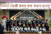 태산뉴스 이지율 기자 | 평택행복나눔본부는 평택시민들을 위해 꾸준히 후원해온 개인 및 기업(단체) 후원자에게 감사를 표하기 위해 지난 10일 ‘나눔愛 행복한 평택 후원자 감사의 날’을 개최했다. 이번 행사는 앙상블 US의 축하공연을 시작으로 2025년 한 해 동안 시민들과 함께한 다양한 모금·나눔 활동을 되돌아보는 영상 상영과 지속적으로 후원하신 개인·단체·기업의 공적을 기리기 위해 평택시장 표창, 나눔실천 감사패, ESG 나눔기업패를 전달하며, 수상자 28명을 비롯한 내빈 60여 명이 참석한 가운데 진행됐다. 끝으로 시립고덕하늘채시그니처어린이집(원장 손난희) 원아들이 축하공연을 선보였으며, 원아들이 만든 종이공예를 행사에 참석한 후원자들에게 직접 전달하며 행사가 따뜻하게 마무리됐다. 이성호 평택시 부시장은 “올 한 해 지역 곳곳에서 따뜻한 나눔을 실천하신 모든 후원자에게 진심으로 감사드린다”며 "2026년 새해에는 이웃사랑을 실천하는 후원자분들의 헌신과 사명에 부응해 평택시 곳곳에 소외된 분들이 생기지 않도록 노력하겠다”고 전했다. 경기 사랑의열매 홍승표 부회장은 “어려운 시기에 자발적이고 적극적