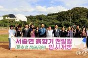 태산뉴스 이동욱 기자 | 양평군 서종면은 지난 17일 오후 1시, 서종면 문호리 968 일대 문호천 생태공원에서 ‘서종면 흙향기 맨발길’ 임시 운영을 기념하는 걷기 행사를 개최했다. 이번 행사는 서종면장을 비롯해 지역 기관·단체장, 각 마을 이장, 주민 등이 함께 참여해 맨발로 자연을 체험하며 건강 증진과 소통의 의미를 나누는 시간으로 진행됐다. ‘서종면 흙향기 맨발길’은 하늘에서 바라보면 서종면의 ‘서’ 자를 형상화한 걷기 코스로, 문호천의 아름다운 자연경관과 어우러진 생태 친화형 산책길이다. 특히, 약 1,500평 규모에 만개한 코스모스 꽃밭은 행사 당일 주민들과 방문객들의 눈길을 사로잡으며 큰 호응을 얻었다. 이날 걷기 행사에는 지역 주민은 물론 외부 관광객들도 참여해 지역에 활기를 불어넣었으며, 가을 정취를 물씬 느낄 수 있는 코스모스 경관과 생태공원이 어우러진 맨발길은 서종면의 새로운 관광 명소로 자리매김할 것으로 기대된다. 홍주표 서종면장은 “흙향기 맨발길은 주민과 관광객 모두가 자연 속에서 치유와 여유를 느낄 수 있는 서종면의 새로운 명소”라며, “앞으로도 지속적인 정비와 편의시설 보완
