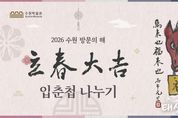태산뉴스 이동욱 기자 | 수원박물관이 2026 수원 방문의 해를 맞아 1월 31일 오후 1시부터 3시까지 박물관 1층 로비에서 세시(歲時) 행사 ‘입춘첩 나누기’를 연다. 관람객에게 서예가 근당 양택동 선생의 친필 입춘첩을 배부한다. 입춘첩은 새해 첫 절기인 입춘에 액운을 막고 행운과 건강을 기원하며 대문이나 기둥에 붙이는 글귀다. 참가자는 ‘입춘대길 만사여의(立春大吉 萬事如意)’ 등 사전 선정한 문구 가운데 하나를 선택할 수 있다. 참가비는 1인당 1000원이며, 현장에서 신청해야 한다. 수원박물관 관계자는 “새해 첫 절기인 입춘에 전통 세시풍속을 시민들과 함께 나누기 위해 ‘입춘첩 나누기’ 행사를 매년 열고 있다”며 “박물관을 찾아 한 해 소망을 담은 입춘첩을 받으시고, 건강하고 행복하게 병오년을 보내시길 바란다”고 말했다.