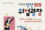 태산뉴스 김준수 기자 | 안산시는 오는 20일 ‘2025년 11월 안산 919취업광장’을 안산올림픽기념관 체육관에서 개최한다고 5일 밝혔다. 이번 ‘안산 919취업광장’은 안산시일자리센터와 지역 일자리 유관기관이 협업해 진행하는 올해의 마지막 채용행사다. 시는 인력난을 겪고 있는 기업체에 우수 인력을 지원하고 취업을 희망하는 구직자에게는 일자리 기회를 제공하는 등 미스매칭 해소를 통한 만남의 장을 마련한다. 이날은 우수기업체 30여 개 사가 참여할 예정이다. 한편, 안산시는 지난 9월 경기도와 공동으로 ‘안산시 스마트허브 2040·경기도 5070 통합 일자리박람회’를 개최해 40개 기업 면접에 1,300여 명이 참여한 바 있다. 참가를 원하는 구직자는 박람회 당일 이력서 등 입사 지원 서류를 지참해 방문하면 ▲1:1 채용면접 ▲1:1 이력서 컨설팅 등 현장에서 희망하는 기업에 지원하고 면접에 참여할 수 있다. 일자리 기관별 취업 상담 및 재무 상담도 받을 수 있다. 참여 기업 정보와 박람회 일정 등 자세한 내용은 안산시청 누리집 ‘안산시 주요서비스-취업(일자리)정보’에서 확인하거나, 안