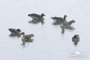 태산뉴스 이동욱 기자 | 의왕도시공사가 운영 중인 조류생태과학관은 최근 왕송호수 일대에서 실시간 생태환경 모니터링 과정에서 환경부 지정 멸종위기야생생물 2급인 큰기러기(Anser fabalis) 다수 개체를 관찰했다고 밝혔다. 조류생태과학관 학예연구사는 “큰기러기(Anser fabalis)는 러시아 동북부 지역에서 번식한 뒤 혹독한 겨울을 피해 한반도로 날아와 월동하는 대표적인 겨울 철새”라며 “흑갈색 깃털에 주황색 다리, 눈송이를 닮은 흰꼬리 깃털이 인상적이며, 날렵한 체형으로 힘차게 비상하는 모습이 특징적”이라고 설명했다. 특히, “큰기러기와 같은 철새들은 매년 동일한 번식지나 월동지로 되돌아오는 ‘회귀성(homing)’을 지니고 있어, 이들이 다시 왕송호수를 찾았다는 사실은 이곳이 먹이활동과 서식에 적합한 건강한 생태환경을 유지하고 있음을 보여주는 중요한 지표라 할 수 있다”고 부연했다. 최재경 의왕도시공사 교통레저처장은 “왕송호수가 희귀 철새들의 안식처로 자리 잡을 수 있도록 지속적인 서식 환경 관리와 시민 참여형 생태보호 활동을 강화하겠다”며 “ESG 선도기관으로서 지역사회와 함께 자연과 공존하는 친환