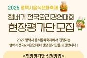 태산뉴스 이지율 기자 | 평택시는 오는 25일 농업생태원에서 ‘2025 평택시 음식문화축제’를 통해 ▲전국 요리경연대회 ▲평택 지역 맛집 및 세계음식 시식·체험관 ▲노 오븐 베이킹 체험관 ▲탄소중립 실천·홍보관 등 다채로운 부스가 운영돼 시민들에게 풍성한 경험을 선사할 예정이다. 전국 요리경연대회는 ‘평택의 맛, 나만의 아이디어로 버거를 완성하다’를 주제로 총 18팀(일반부 10, 가족부 8)이 본선에 진출해 열띤 경연을 펼친다. 지난해와 달리 참가 부문이 일반부와 가족부로 확대됐으며, 시상 규모도 10팀 740만 원으로 늘어나 큰 기대를 모으고 있다. 경연대회의 생생한 현장을 함께할 시민 현장평가단도 사전 모집한다. 10월 24일(금) 오전 9시부터 오후 5시까지 일반부와 가족부 각 20명씩 무작위로 선착순 접수받으며, 편식 없는 고등학생 이상이라면 누구나 신청할 수 있고, 선정된 지원자는 실제 경연 현장에서 요리를 맛보고 평가하게 된다. 또한, 오전 10시에는 빵과당신 인재홍(대한민국 제과명장)이 진행하는 베이킹 체험이 마련돼 있으며, 참가 신청은 24일(금) 오전 10시부터 평택예총 공식 블로그 및 평택시