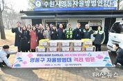 태산뉴스 이동욱 기자 | 수원시 영통구는 지난 12일 영통발전연대가 다가오는 설 명절을 맞아 영통구 자율방범대 초소를 방문하여 격려 물품을 전달했다고 밝혔다. 영통구 자율방범대는 각종 범죄·사고가 우려되는 관내 취약 구역을 집중 순찰하며 안전한 지역사회를 조성하기 위해 활동하고 있는 자율적인 자원봉사 단체이다. 이영종 영통발전연대 회장 및 임원들은 영통구 매탄3지대를 비롯한 5개 동 자율방범대 초소를 방문해, 명절을 앞두고도 지역 치안 강화를 위해 힘쓰고 있는 대원들의 노고를 격려했다. 이영종 영통발전연대 회장은 “바쁜 와중에도 늦은 밤까지 지역 안전을 위해 기꺼이 헌신하시는 대원 여러분의 노고에 진심으로 존경과 감사를 표한다”며 “여러분의 헌신으로 영통구가 범죄 없는 안심 마을로 자리 잡을 수 있었던 만큼, 앞으로도 주민들이 평온한 일상을 누릴 수 있도록 든든한 파수꾼이 되어주시길 부탁드린다”고 말했다. 장수석 영통구청장은 “지역 공동체의 안전을 위해 자발적으로 봉사에 참여해 주시는 자율방범대원 여러분께 깊이 감사드린다. 앞으로도 자율방범대와 함께 소통하며 영통구 발전을 위해 최선을 다하겠다”고