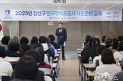 태산뉴스 이동욱 기자 | 수원시 장안구는 지난 10월 31일 장안구청 대회의실에서 ‘2025 인구주택총조사 사전준비 교육’을 실시했다. 2025년 인구주택총조사의 원활한 추진을 위해 채용된 118명의 조사원을 대상으로 진행된 이번 교육은 조사 수행에 필요한 실무역량을 강화화고 책임감과 현장 대응능력을 높이기 위하여 마련됐다. 교육에 앞서 이일희 장안구청장은 “인구주택총조사는 인구·가구·주택 관련 종합정보를 파악하여 주요 정책의 기본자료로 활용되고, 국가와 지역의 정책 방향을 결정하는 가장 기본적이면서 중요한 통계조사”라며 “이번 조사에 참여하게 된 조사원들이 가구 방문 시 안전에 유의하며, 꼼꼼하고 성실하게 조사에 임해주길 바란다”고 격려했다. 11월 18일까지 진행되는 2025 인구주택총조사는 인터넷 조사 또는 전화 조사를 통해 참여할 수 있으며, 인터넷·전화 조사 미응답 가구를 대상으로 11월부터는 조사원이 방문 면접조사를 진행할 예정이다.